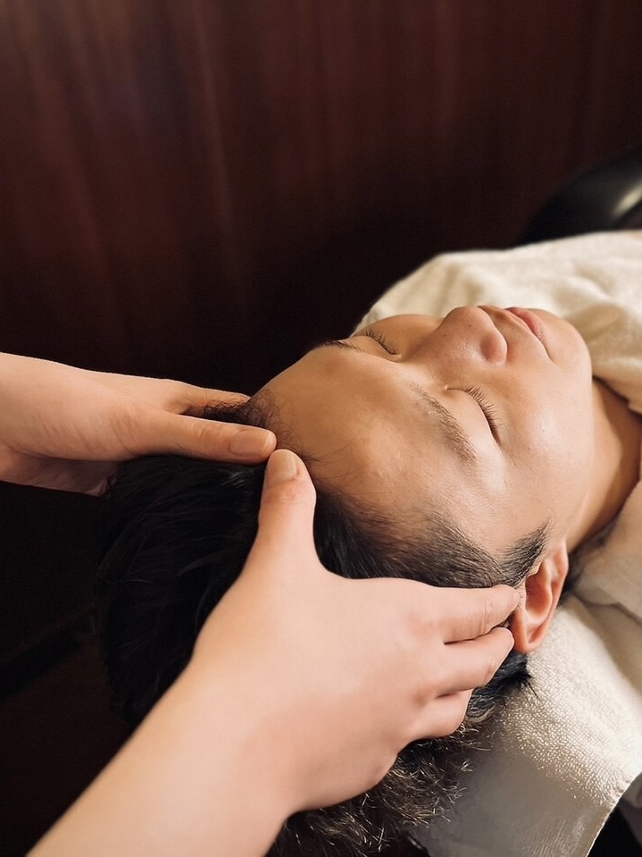 さらに、完全個室の落ち着いた空間で、首筋から頭頂部までを絶妙な指圧で丁寧にマッサージいたします。血行を促進することで、髪の根元からハリとコシが蘇り、朝のスタイリングが驚くほど決まりやすくなります。